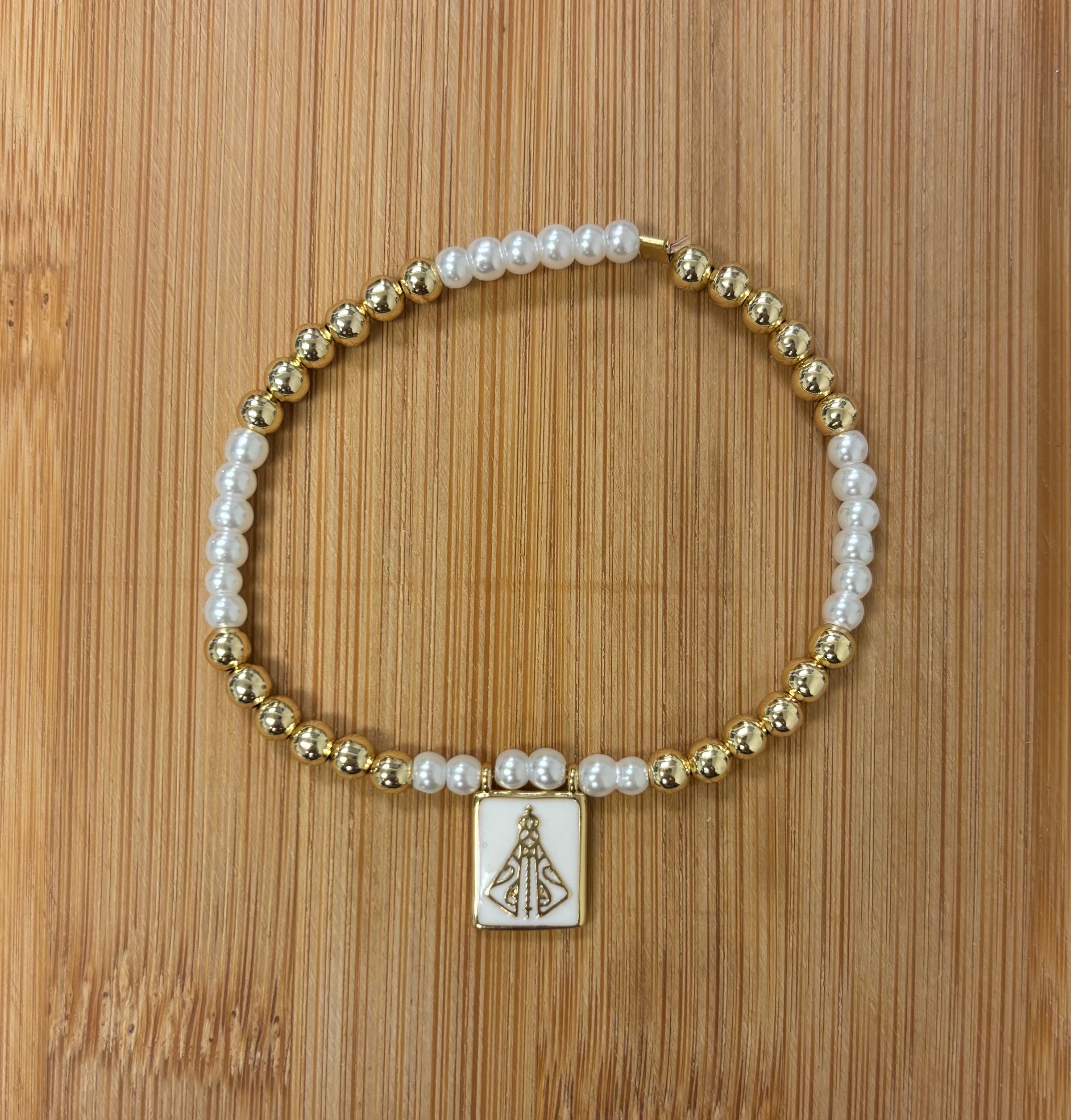 Mini Beads Elastic W/Virgin Charm Bracelet