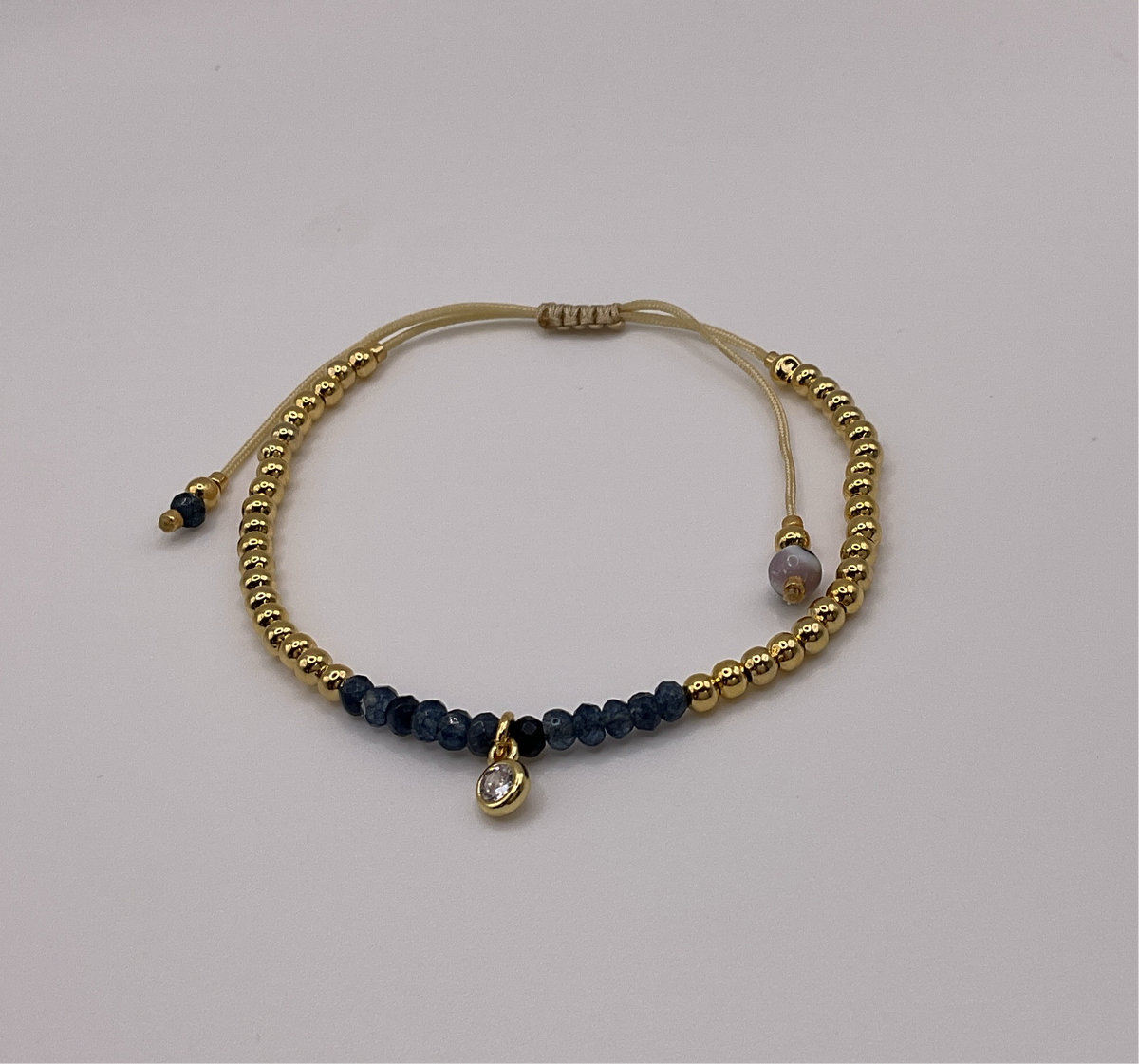Gold, blue Mini Beads W/ Mini Evil Eye Bracelets