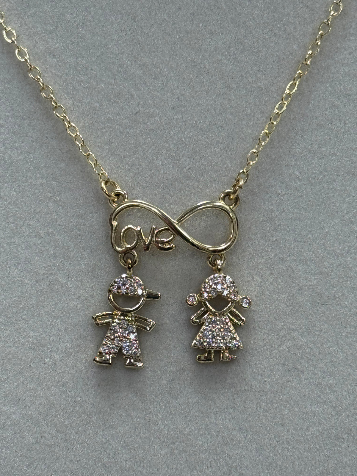 Gold Romantic Love Letter W/ Boy & Girl Necklace