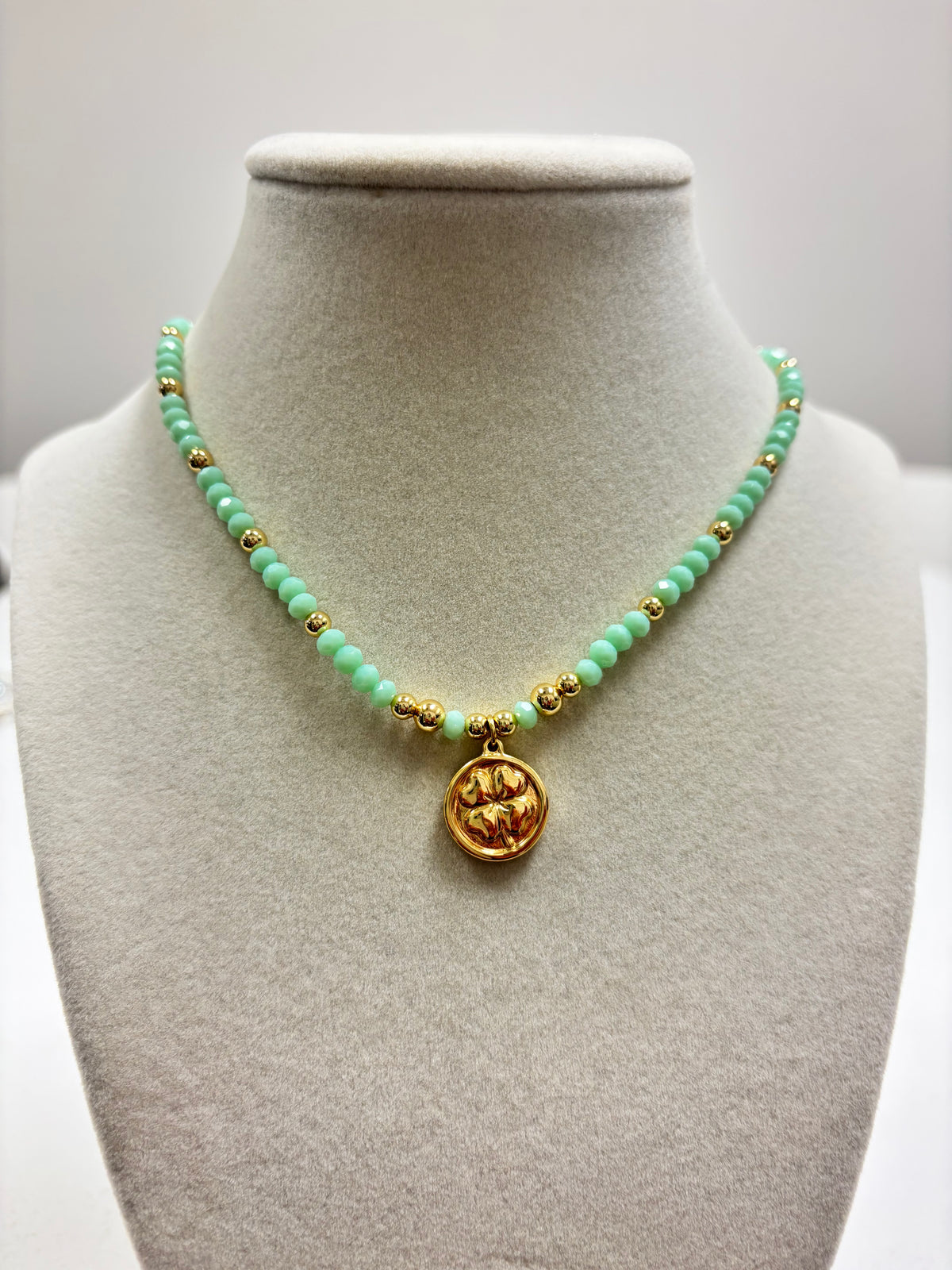 Mermaid's Tale Beads With Shiny Small Gold Beads & Leaf Clover Necklace