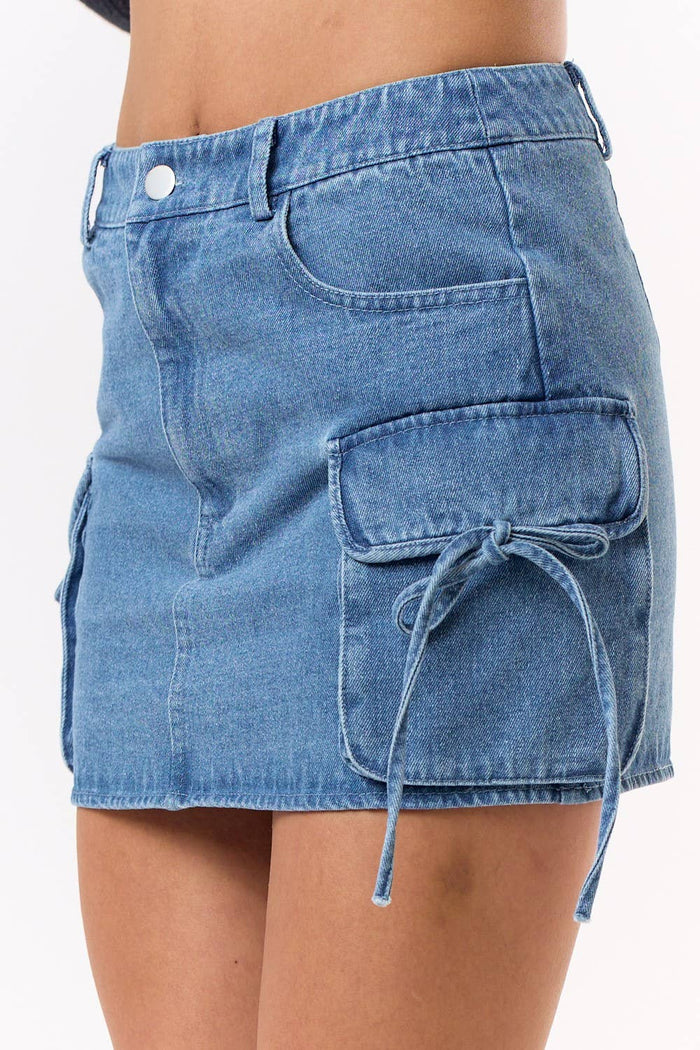 Bow Tie Denim Cargo Mini Skirt