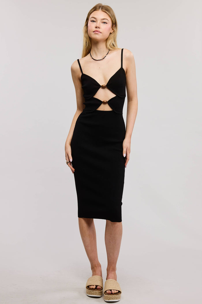Bodycon Midi Dress with Cut-Out and Wooden Accents