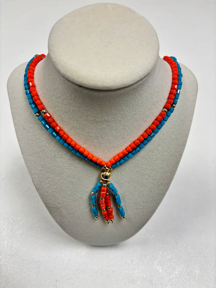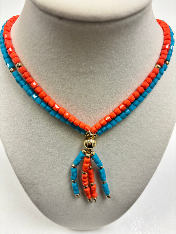 Blue Turquoise & Orange Beads Necklace