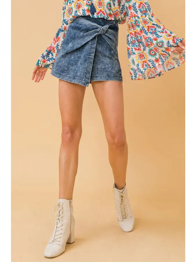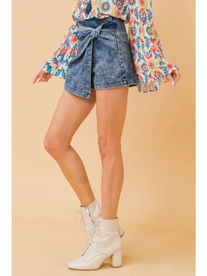 Acid Wash Skort- Denim
