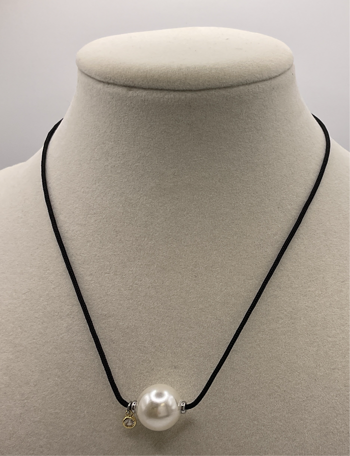 Adjustable Black Necklace W/ BIG Pearl