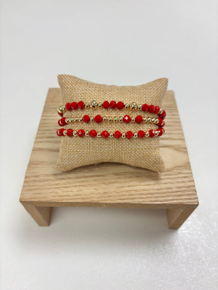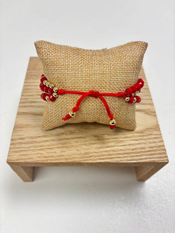 Adjustable Gold & Red Beads - 3 in 1 Bracelet