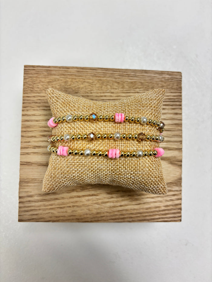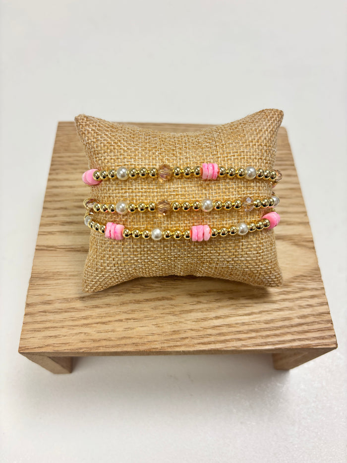 Adjustable Gold, Pink & Pearls Beads - 3 in 1 Bracelet