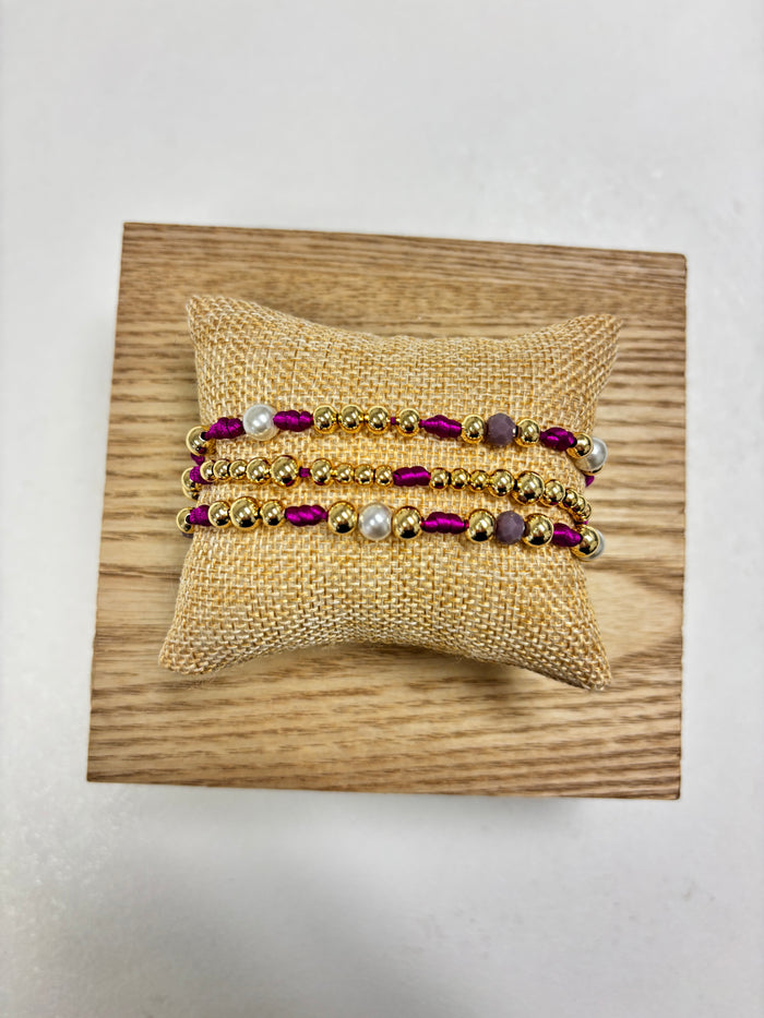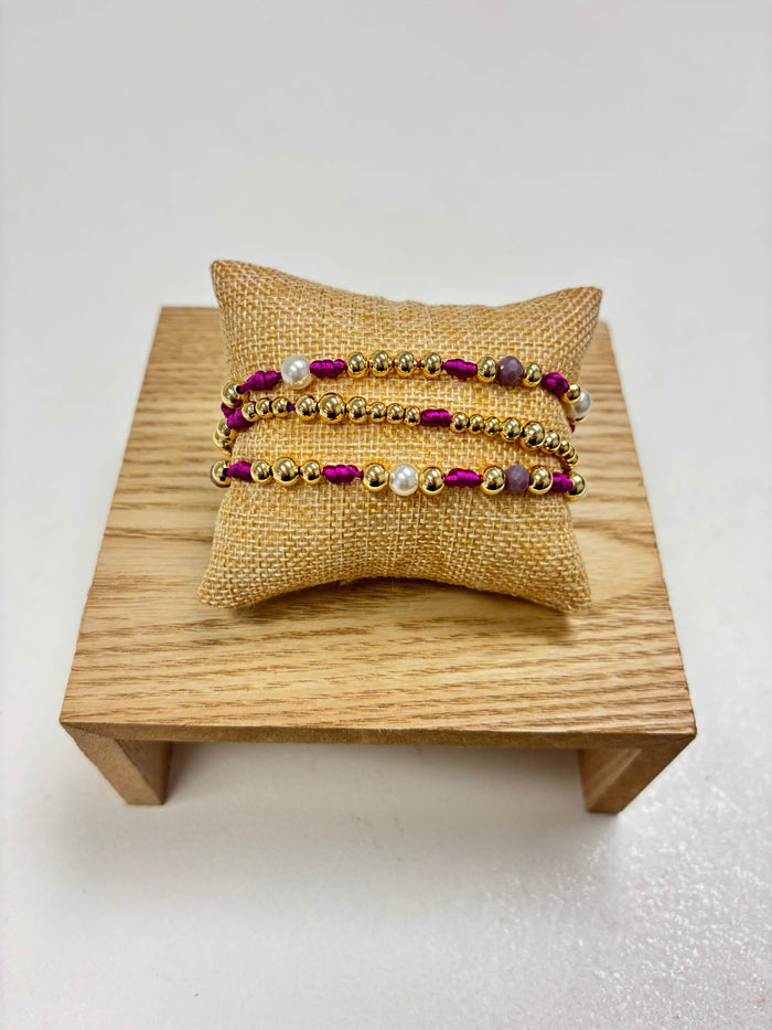 Adjustable Gold, Purple & Pearls Beads - 3 in 1 Bracelet