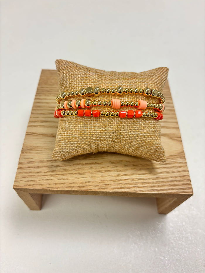Adjustable Gold, Orange & Pearls Beads - 3 in 1 Bracelet