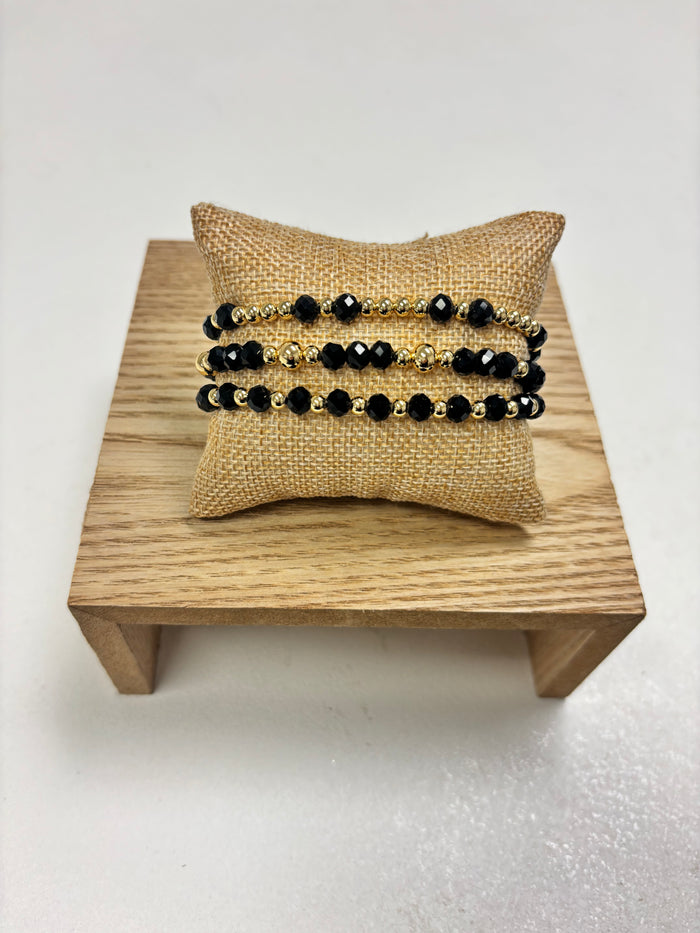 Adjustable Gold & Black Beads - 3 in 1 Bracelet