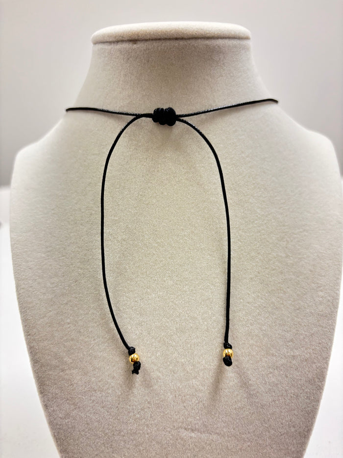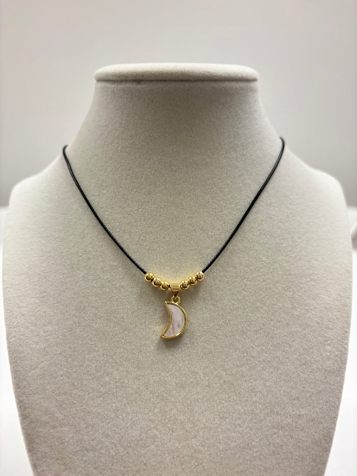 Adjustable Black Rope W/Nacar Moon & Mini Gold Beads Necklace