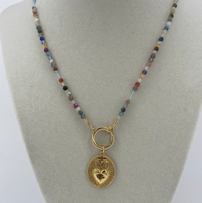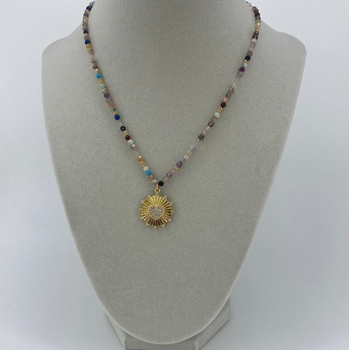 Colorful Bead W/ Gold Disk & Heart