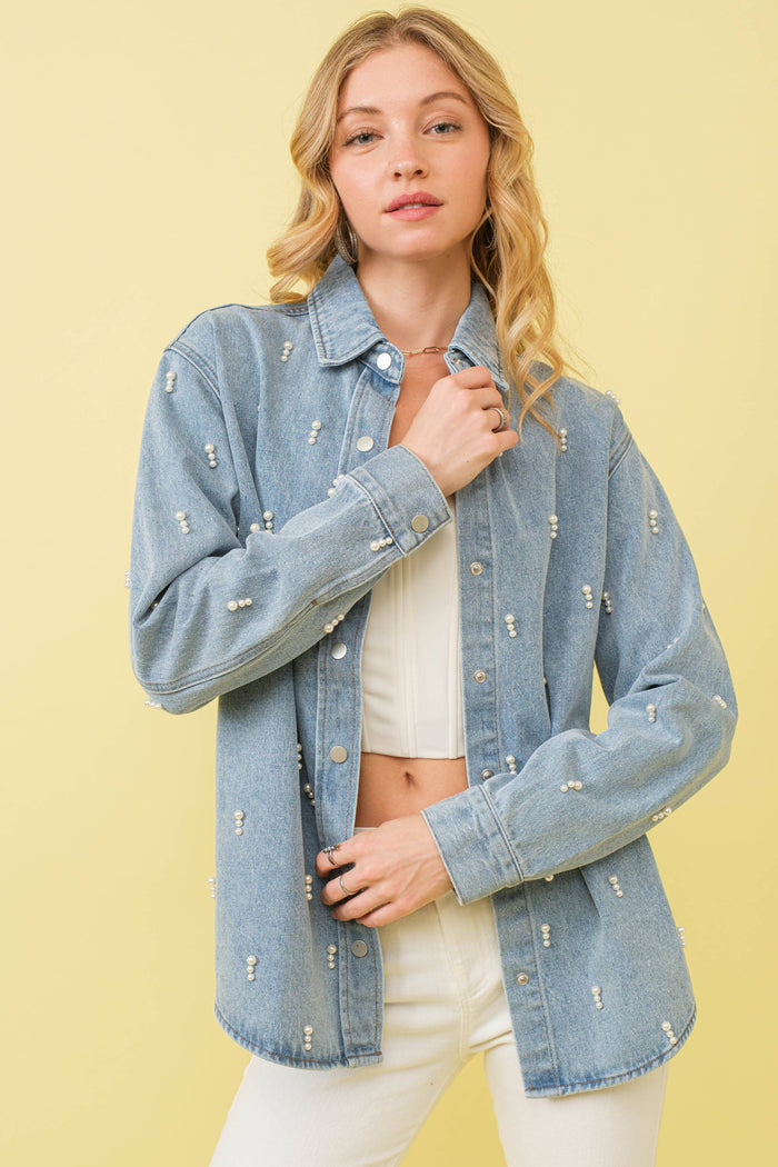 Garment Washed Denim Pearl Shirt Jacket