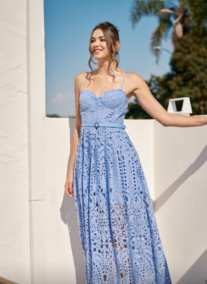 Belted Eyelet Lace Maxi dress