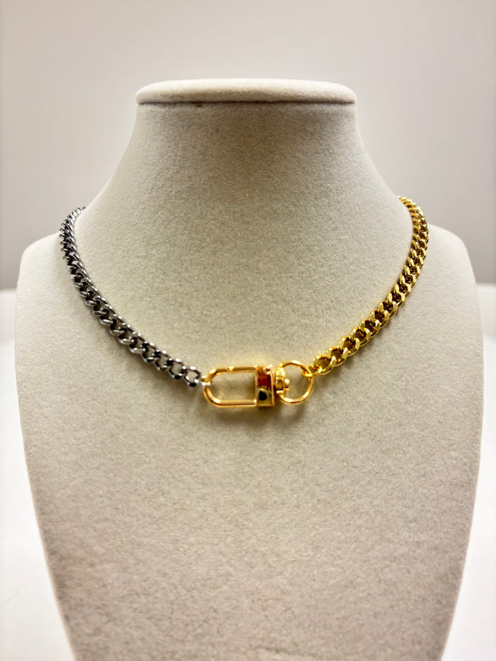 Silver & Gold Chain W/Claw Claps Necklace