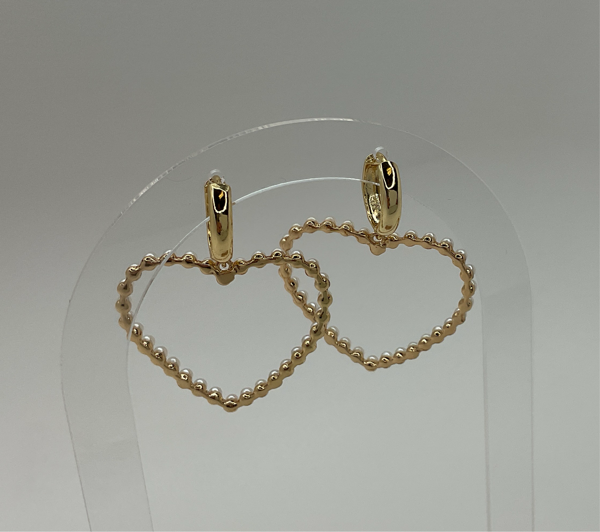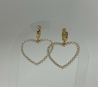 Mini Gold Hoops W/ Hanging Mini Pearls Big Heart
